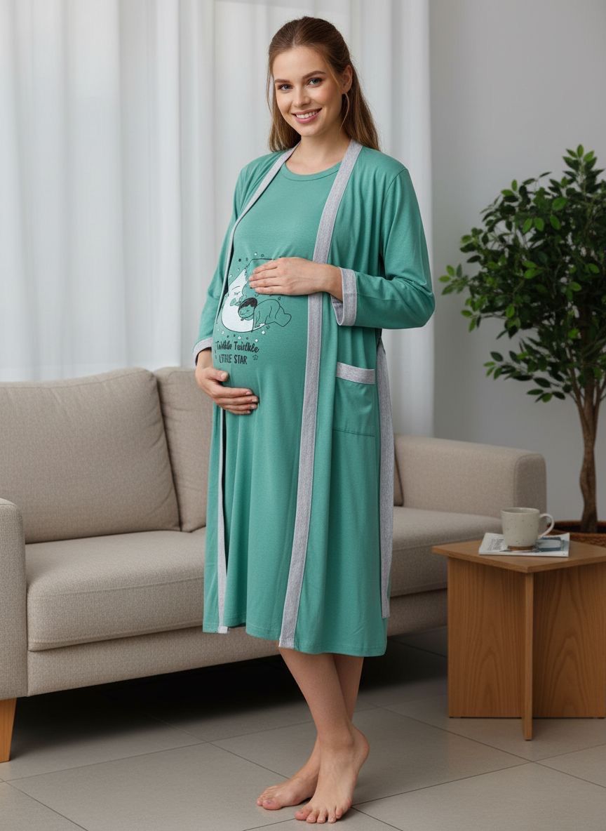 Bademantil i spavaćica za trudnice i porodilje koji su izrađeni od 100% pamuka pružit vam mekoću i prozračnost koja je neophodna tokom noći. Njen poseban kroj omogućava prostor za rastući stomak i pruža udobnost tokom celog perioda trudnoće. Sa kratkim rukavima, spavaćica vam pruža slobodu kretanja i osigurava da se osećate prijatno i opušteno.