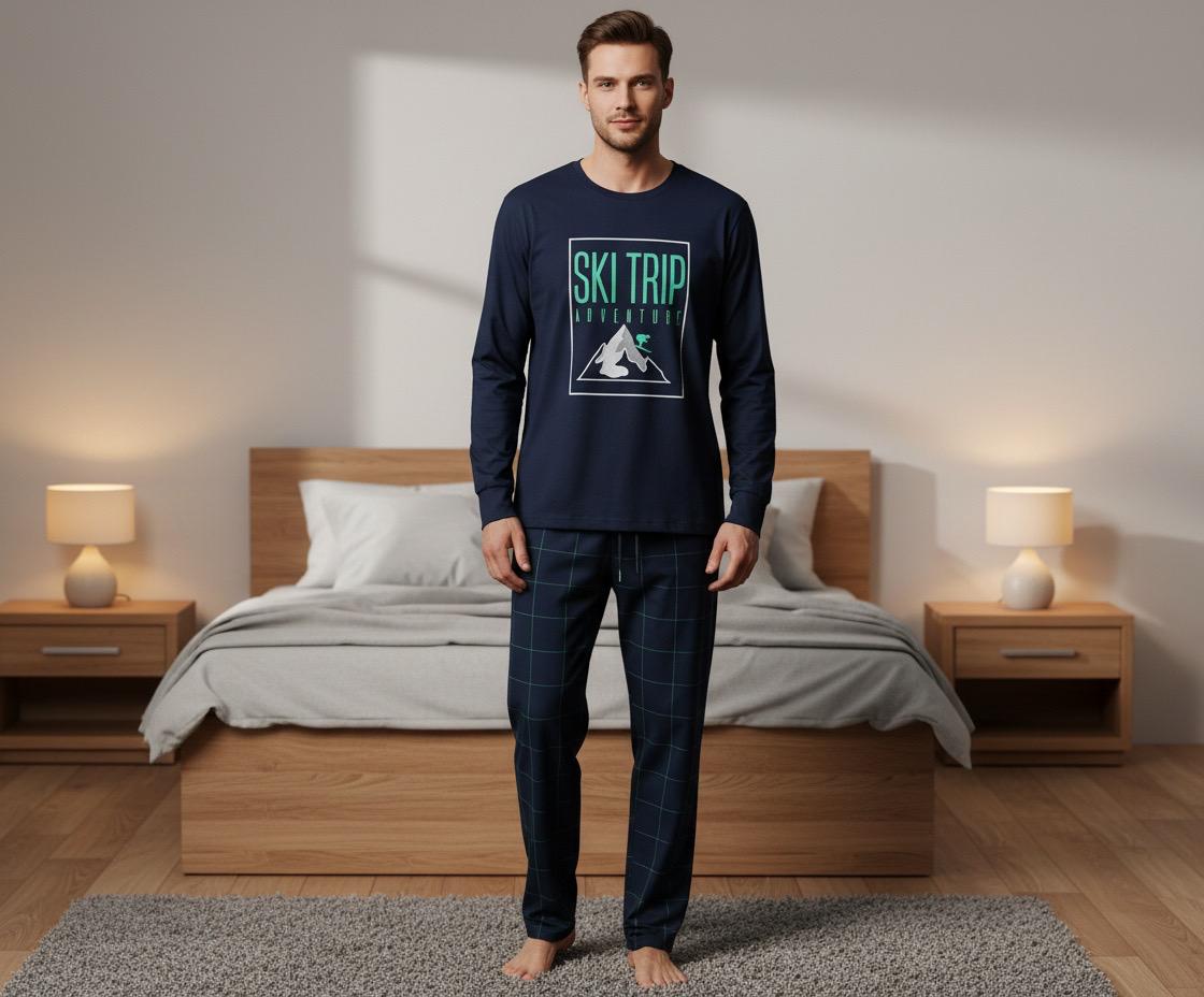 Ako tražiš udobnu i veselu pidžamu za spavanje, pogledaj ovu mušku pidžamu sa sivom majicom i šarenim donjim delom.
