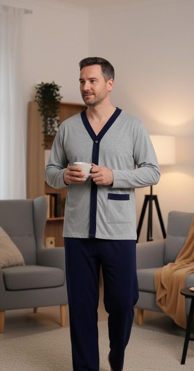 Bilo da je u pitanju opuštanje kod kuće ili noćni san, naša muška pidžama na kopčanje je idealan izbor. Udobnost, jednostavnost i praktičnost su ono što je karakteriše, čineći je omiljenom opcijom za muškarce koji cene udobnost i stil.